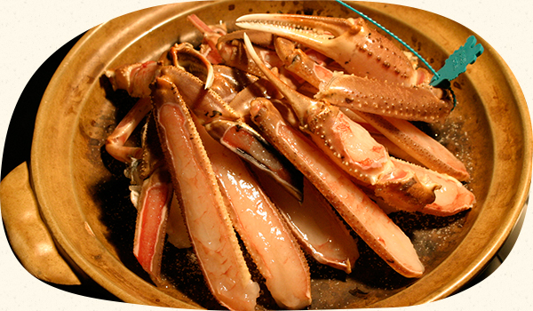かにの漁獲高日本一の浜坂漁港で揚がった松葉ガニを刺身、焼き、鍋で楽しんでいただきます。信頼している魚屋から仕入れているので、質のいい松葉ガニをお楽しみ頂けます。かに刺しは口にいれた瞬間に甘みが広がり、かにの繊細な味が広がります。